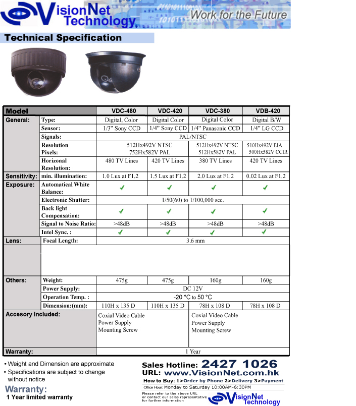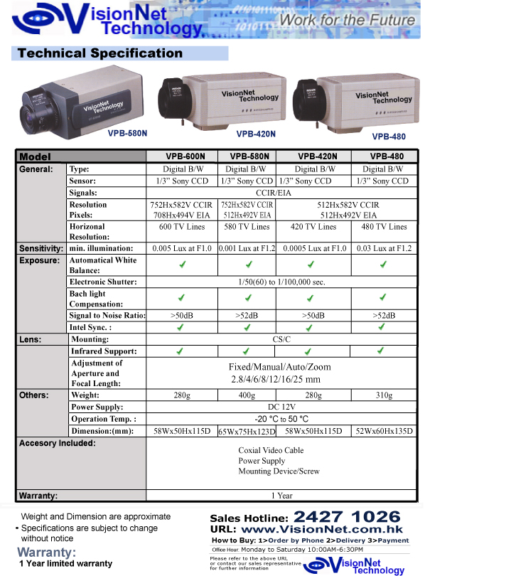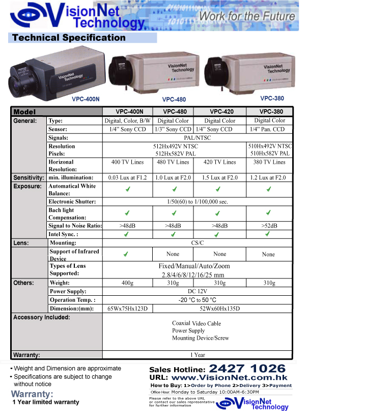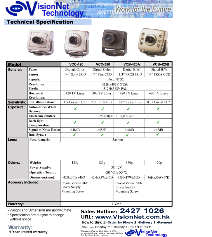 B) VIDEO CAMERA PRODUCT DATASHEET |